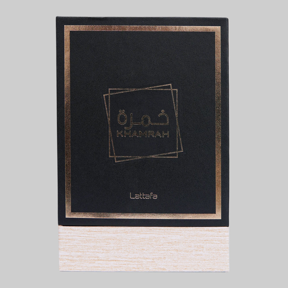 Khamrah by Lattafa Perfumes is an Aromatic Spicy fragrance for women and men. This is a new fragrance. Khamrah was launched in 2022. The top notes are Cinnamon, Nutmeg, and Bergamot; the middle notes are Dates, Praline, Tuberose, and Mahonial; the base notes are Vanilla, Tonka Bean, Amberwood, Myrrh