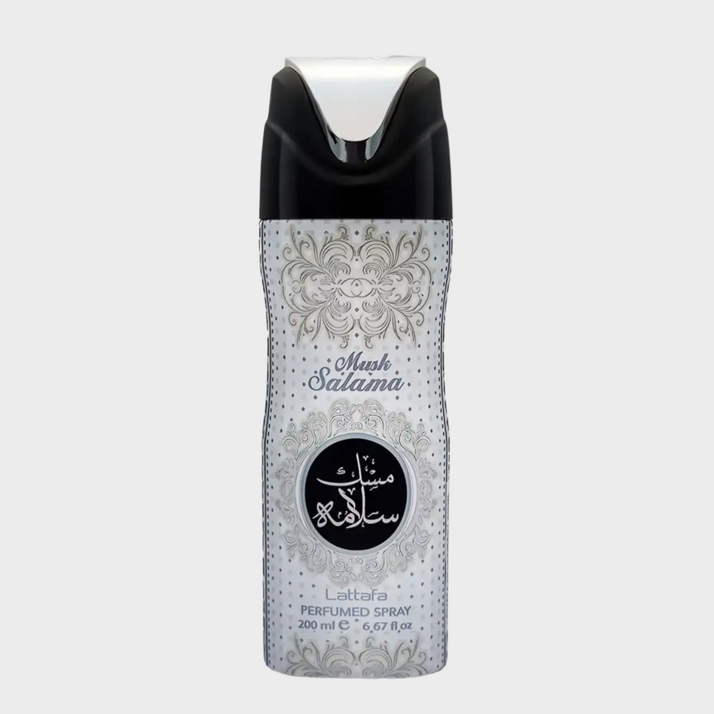 "Musk Salama Perfumed Spray 200ml by Lattafa is an exquisite fragrance that is perfect for both men and women. This scent is a delightful blend of musk, floral, and woody notes that create a warm and inviting aroma.