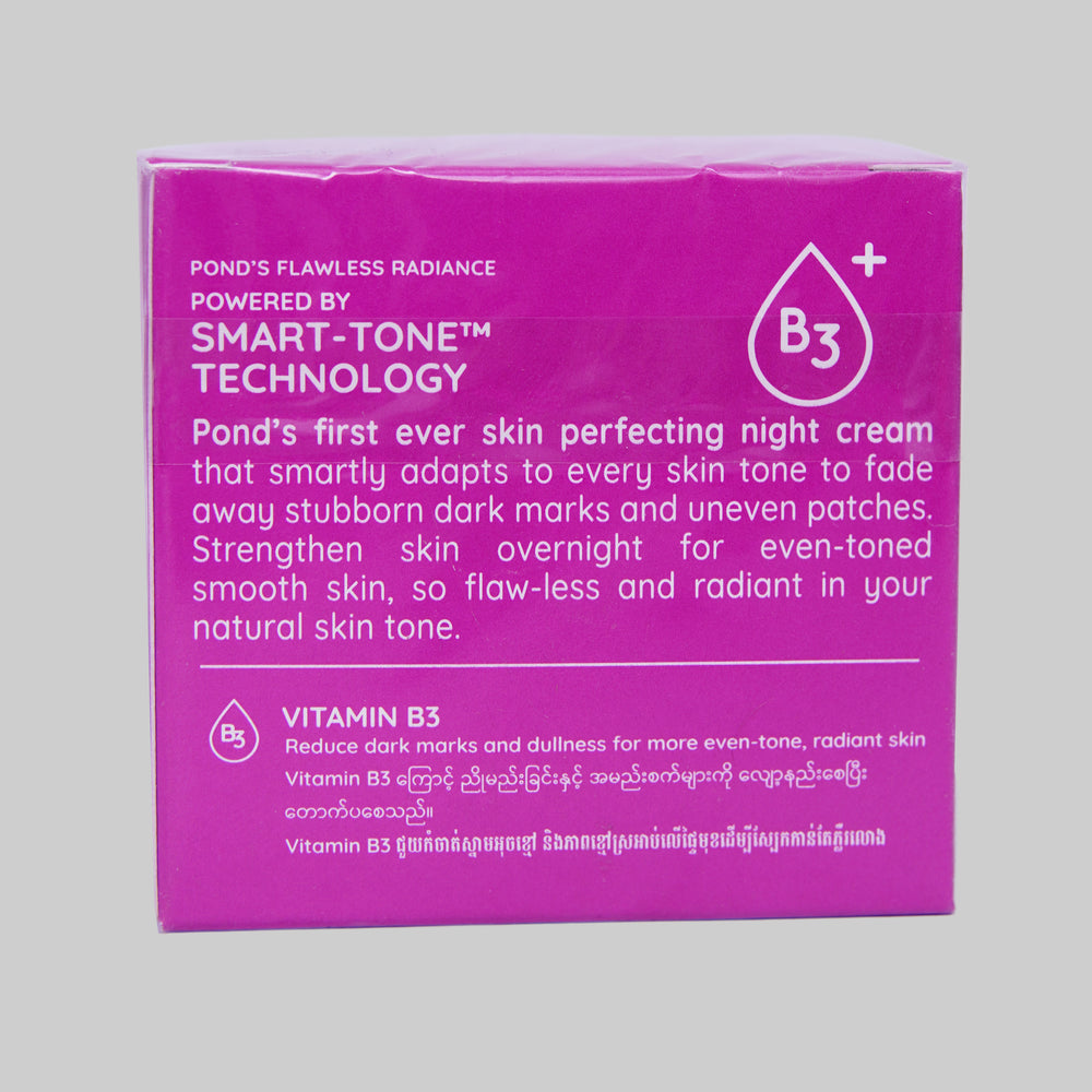 Elevate your evening skincare routine with Pond’s Flawless White Night Cream, presented in a sleek 50gm jar. Crafted for overnight skin transformation, this cream targets skin imperfections, uneven tones, and dark spots, revealing a clearer and brighter complexion by dawn. Enriched with advanced skin-brightening ingredients, it works diligently to regenerate and repair your skin while you sleep. Its luxurious texture feels indulgent and is easily absorbed, ensuring nourished, soft skin. With Pond’s, embrace the promise of a flawless, rejuvenated glow every morning.