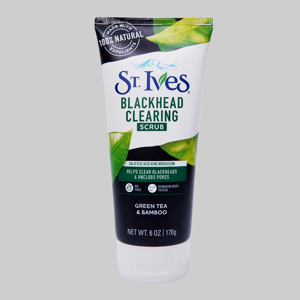 St. Ives Blackhead Clearing Green Tea Face Scrub contains 1% salicylic acid which is efficient to clear blackheads, reduce and calm redness. It is made from natural exfoliants including green tea leaves.