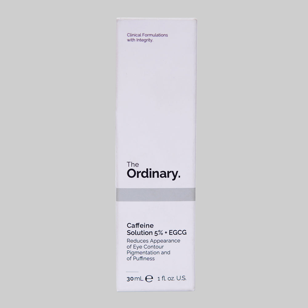 Introducing The Ordinary Caffeine Solution 5% + EGCG, a water-based serum crafted to diminish the appearance of puffiness and dark circles in the delicate eye contour area. Formulated with a potent combination of caffeine and highly-purified epigallocatechin gallatyl glucoside (EGCG), this serum targets visible signs of fatigue and stress around the eyes.