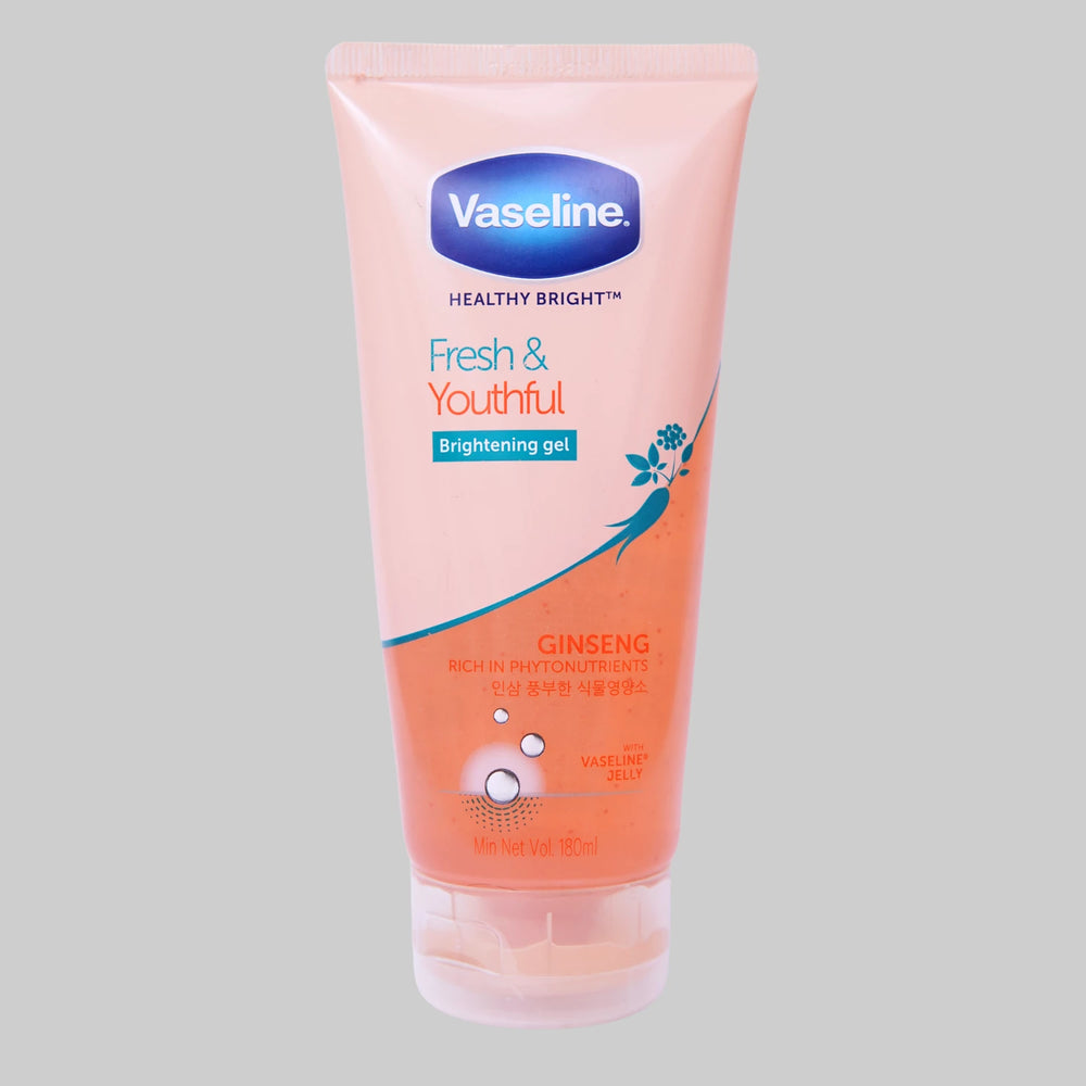 Enhance your skin's radiance with Vaseline Fresh & Youthful Brightening Gel. This gel features a powerful formula that brightens and rejuvenates skin, leaving you with a youthful, radiant glow. Dermatologist tested and non-greasy, this gel is the perfect addition to your skincare routine for a brighter, fresher complexion.