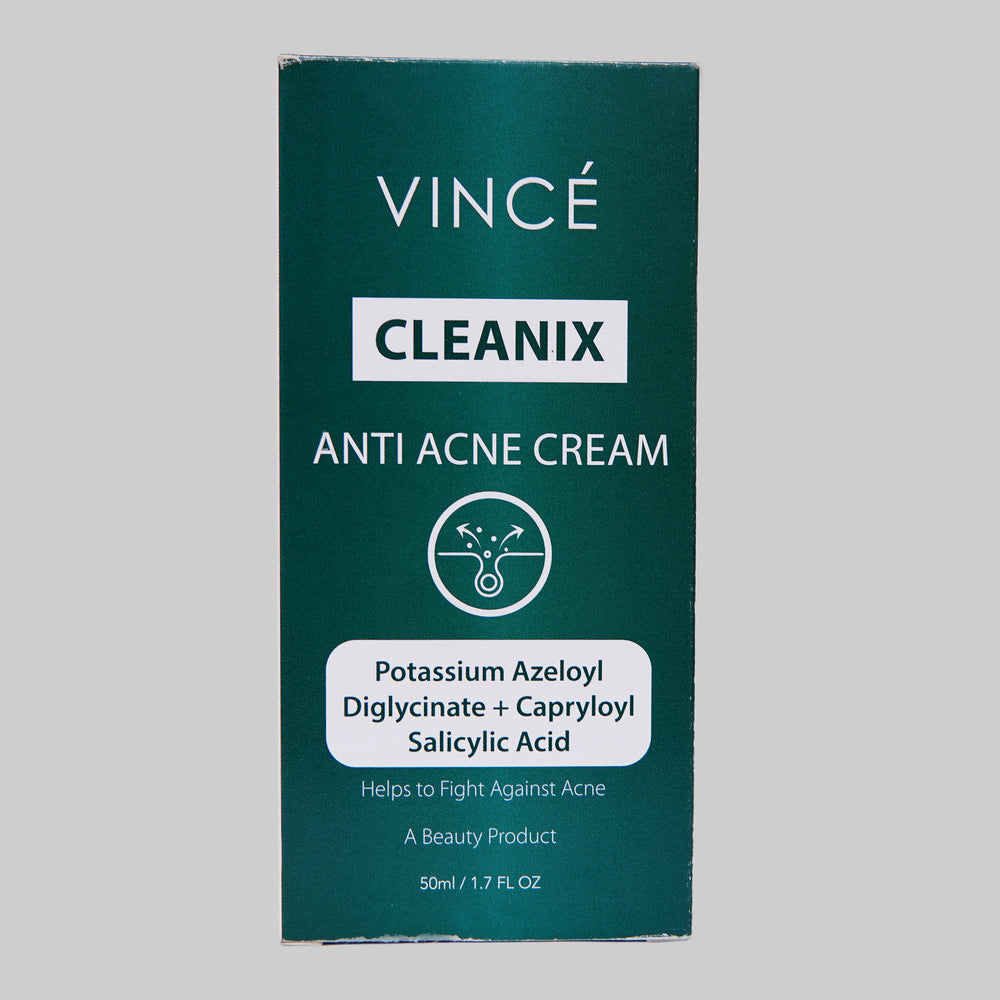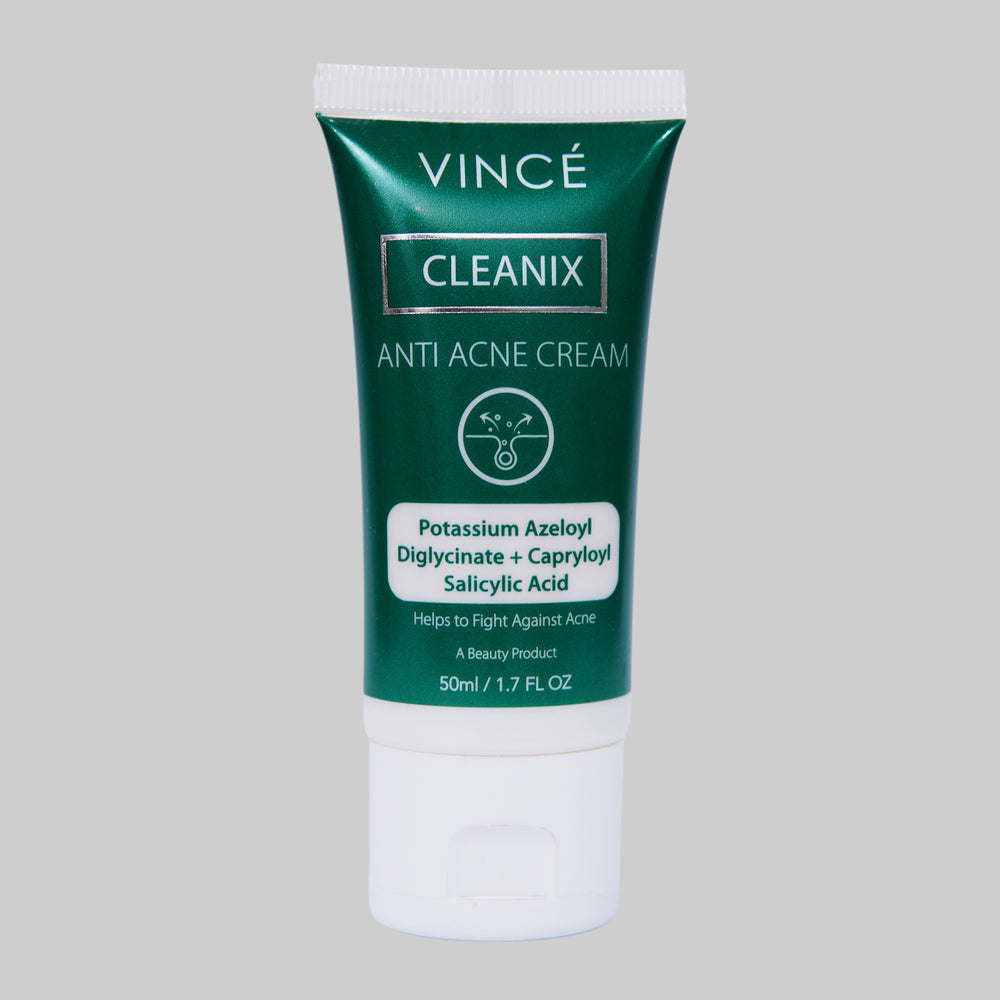 VINCE Anti Acne Cream is an extremely effective combination of highly potent anti-microbial & antioxidants which help to kill acne-causing bacteria, calm redness, as well as lighten acne marks. The high concentration of potassium Azeloyl Diglycinate & Capryloyl Salicylic Acid not only fades dark spots and brightens dull areas, also balances oil production and stimulates cell renewal. It helps to refine and tighten skin pores and gives you healthy, younger-looking spotless skin.