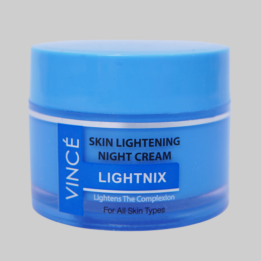 VINCE Skin Lightening Night Cream is a nutritive whitening cream that restores the facial skin before resting at night time. It contains Licorice extract, Alpha Arbutin & Shea Butter to continually whiten and clarify the skin as It rests, slowing down the production of melanin while smoothing and firming the skin.