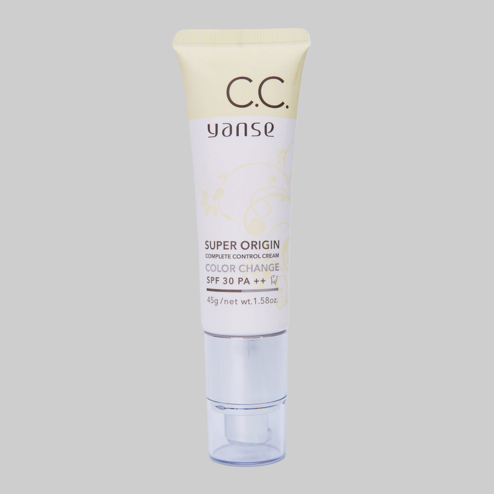 A waterproof color corrector face cream that can be used as a foundation and primer also. Lasts all day long and provides the skin with a natural satin smooth skin. can also be used in summers as it gives you a satin surface with waterproof qualities and helps in making the makeup last longer. If you use Yanse C.C. Super Origin Complete Control Cream alone as a base, then only add a light eye look and lip to complete a natural-looking face. C.C Super Origin Complete Control Cream.